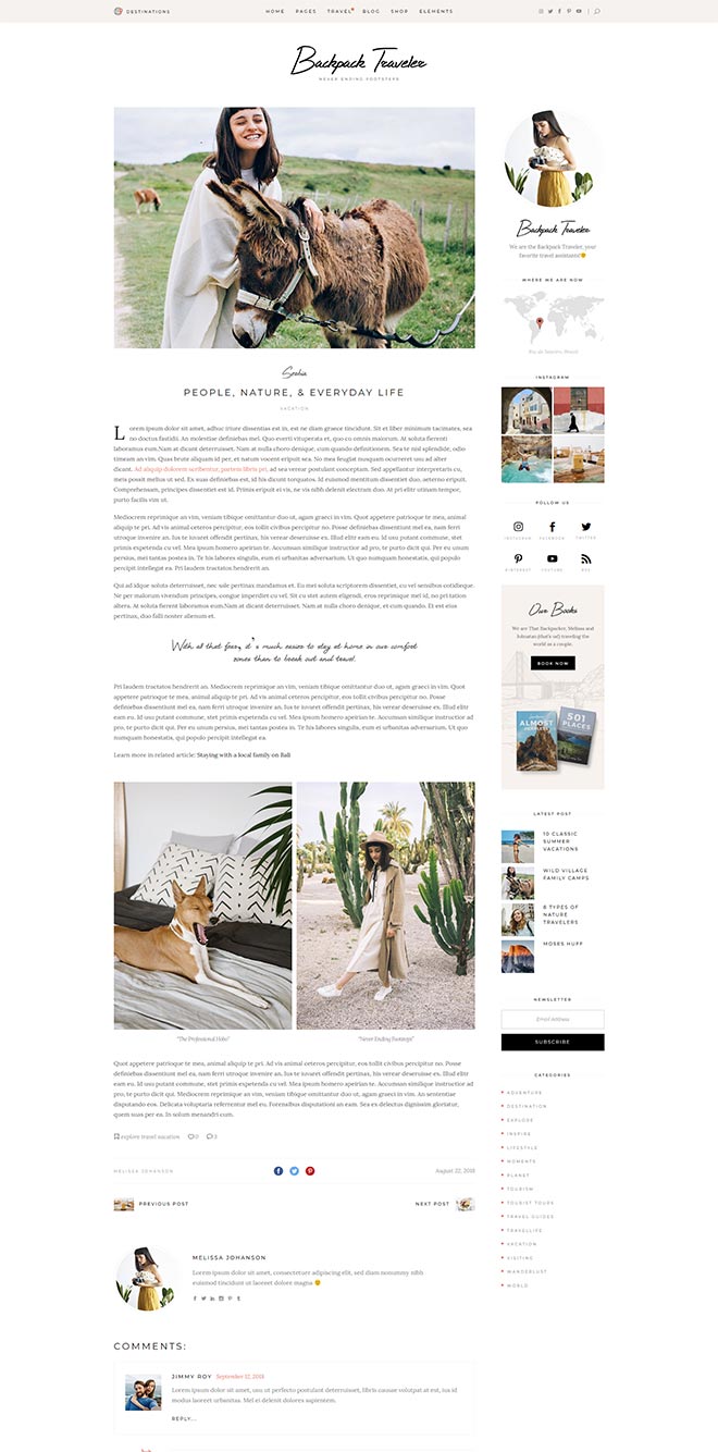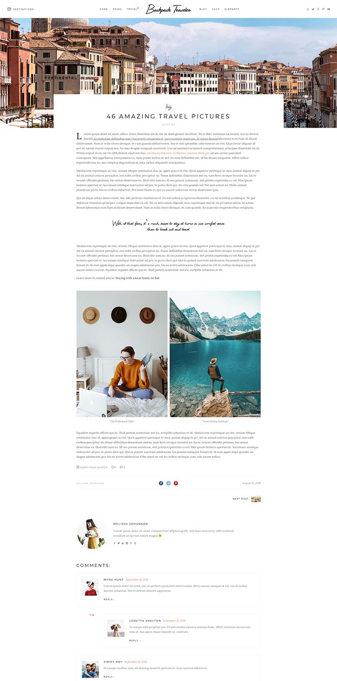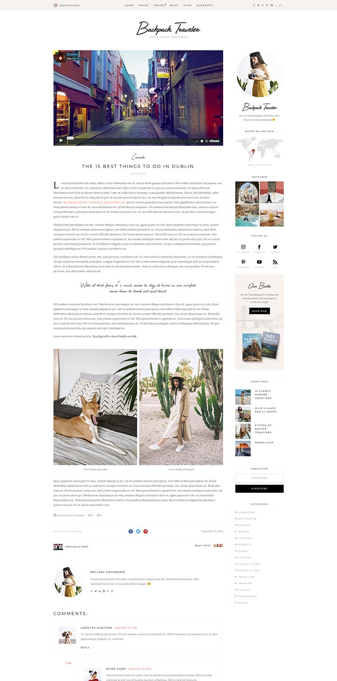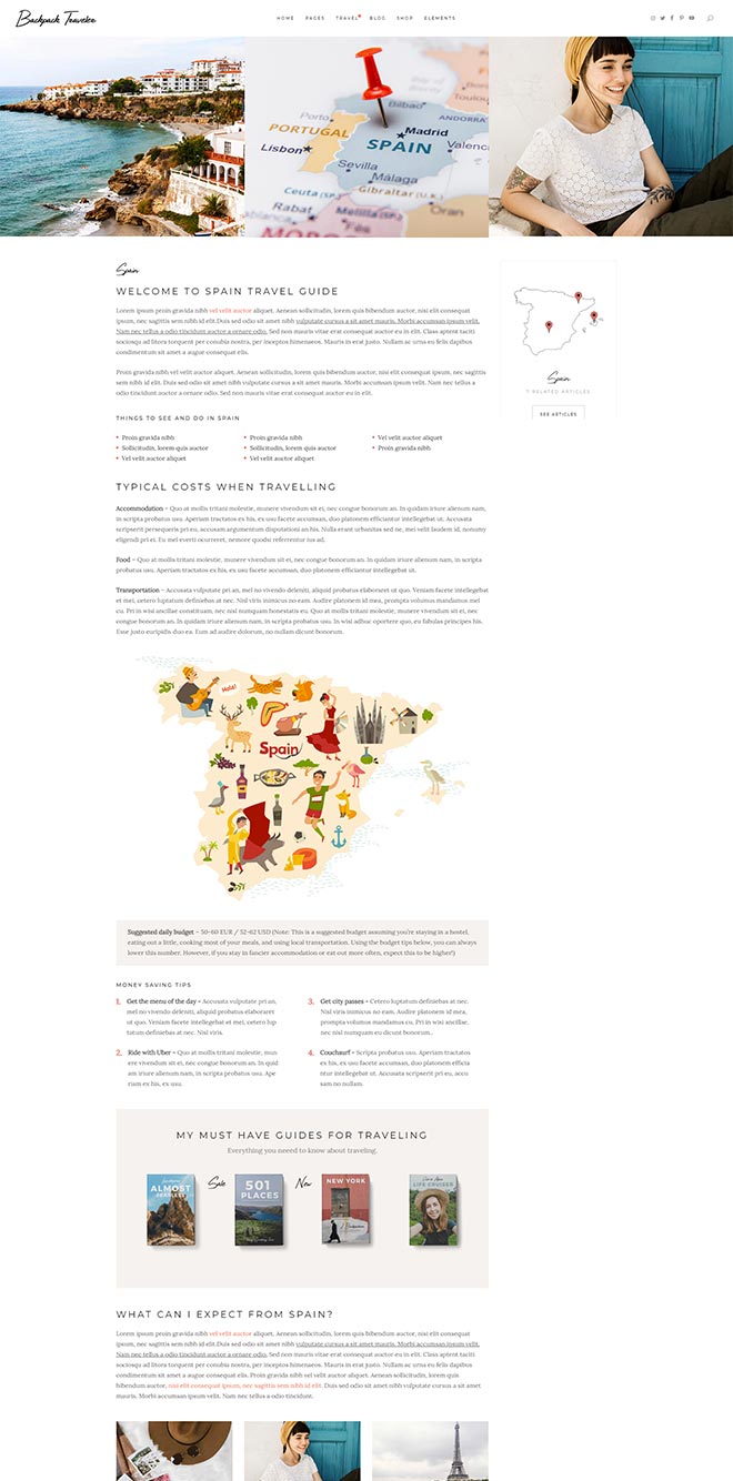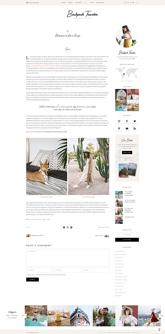 Bundled with anawe-inspiring set of destination layouts. They provide you with a ready-to-go & fully flexible way to present detailed write-ups about places you visited.